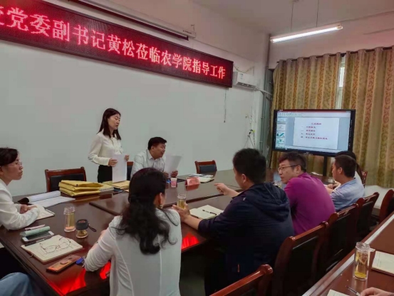 6月18日上午,校党委副书记黄松到农学院调研指导本科教学合格评估工作情况,农学院全体科级及以上干部参加。