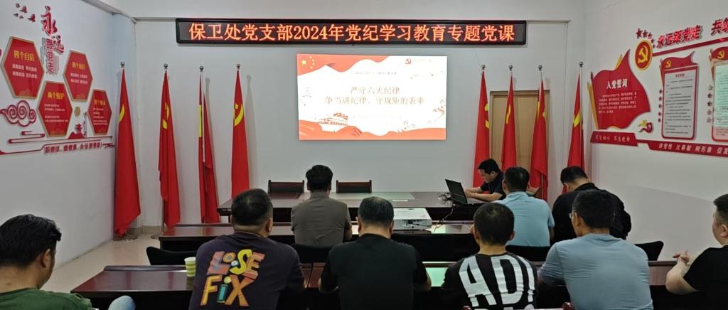 根据学校党委《关于在全校党员中开展党纪学习教育的工作方案》通知要求,5月21日,机关保卫处党支部支书记张宇航以“严守六大纪律,争当讲纪律、守规矩的表率”为题,为保卫处全体党员干部讲授党纪学习教育主题党课。