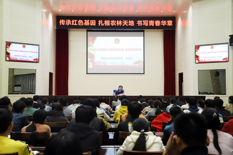 11月6日晚,校党委书记余作斌在图书馆六楼报告厅,以《传承红色基因,扎根农林天地,书写青春华章》为题,为广大青年学生上了一堂深刻的思政课。他勉励同学们以学习贯彻习近平总书记考察调研河南重要讲话精神为强大动力,大力弘扬大别山精神,以强农兴农为己任,让青春在服务“三农”、实现中华民族伟大复兴的生动实践中焕发出更加绚丽的光彩。