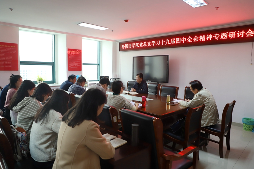 党委书记余作斌到外国语学院、图书馆宣讲党的十九届四中全会精神
