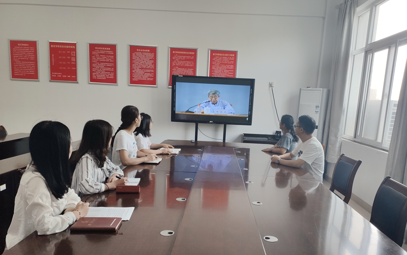学校领导班子成员在综合楼6楼会议室收看直播,各党总支、各师生党支部在会议室、活动室通过电视、网络等多种形式集中收看,认真学习陈宝生部长的讲话精神,并引发热烈反响。