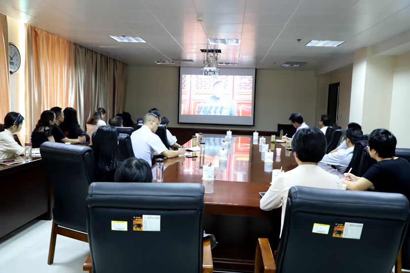在校领导和相关部门负责同志在综合楼6楼会议室集中收听收看大会实况。各党总支、各师生党支部也利用报告厅、活动室等多地收听收看。各个观看现场氛围浓厚,伴随着习近平总书记讲话、阅兵仪式和群众游行环节的展开,现场不时爆发出热烈的掌声。
