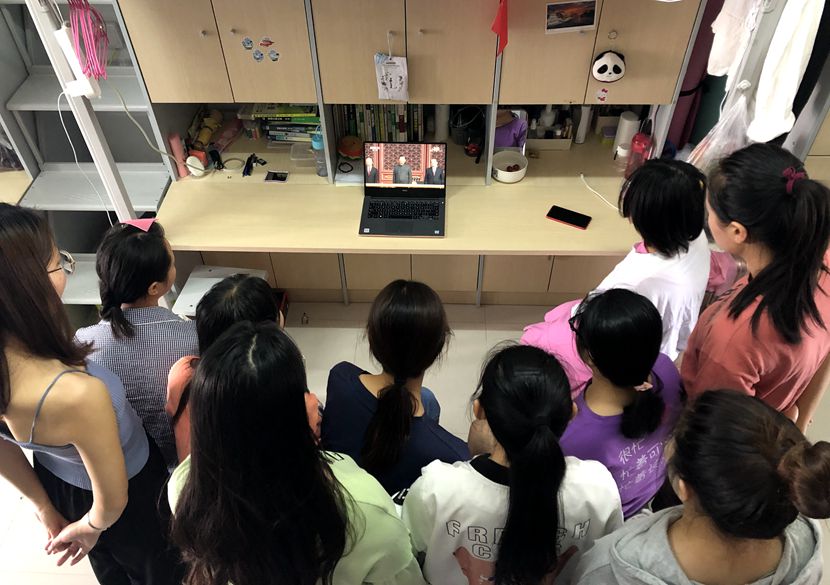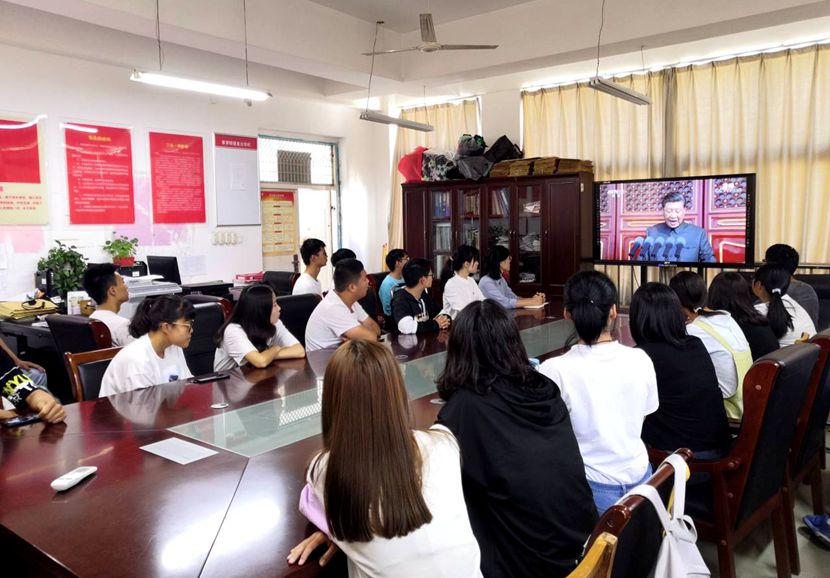10月1日上午10时,庆祝中华人民共和国成立70周年大会在北京天安门广场隆重举行,中共中央总书记、国家主席、中央军委主席习近平出席大会并发表重要讲话。beat365在线平台官网师生通过广播、电视、网络、手机客户端等,收听收看大会实况,深入学习习近平总书记重要讲话精神。