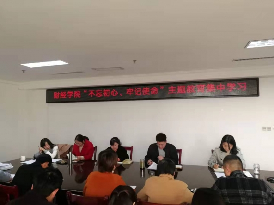 11月19日,财经学院在行政楼821会议室开展“不忘初心、牢记使命”主题教育集中学习。学院全体党员教师参加学习,会议由院党总支书记朱长明主持。