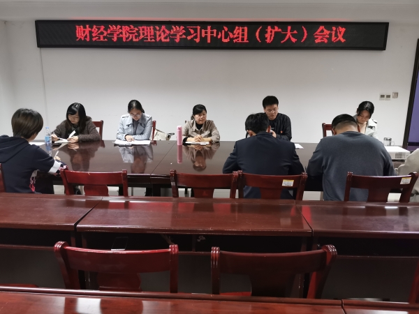 11月6日下午,财经学院党总支在行政楼821会议室召开理论学习中心组(扩大)集体学习会。学院领导班子成员、科级干部以及教工、学生支部书记参加学习会,会议由院党总支书记朱长明主持。