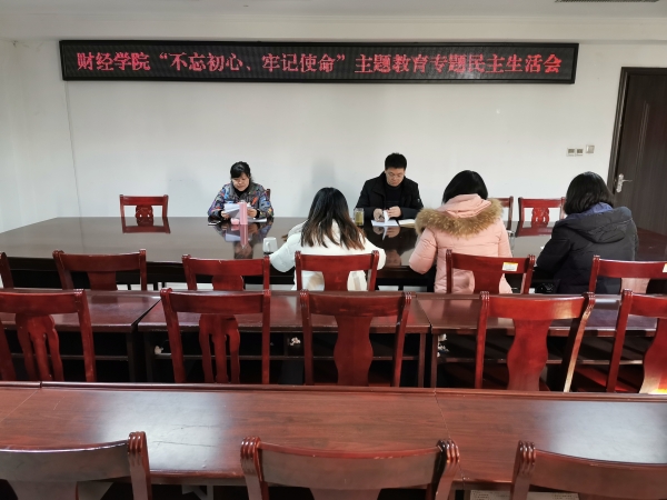 12月2日上午,财经学院党总支在行政楼821会议室召开“不忘初心、牢记使命”主题教育专题民主生活会。学院全体班子成员参加会议,会议由院党总支书记朱长明主持。