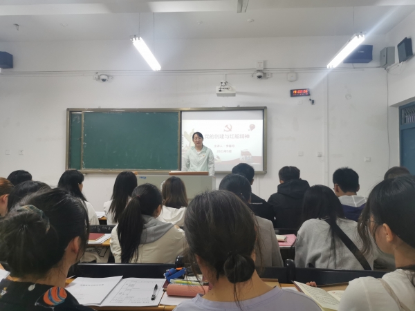 为深化党史学习教育,坚定党员理想信念,5月12日下午,我财经学院学生党支部书记李春月以“党的创建与红船精神”为题,在二教102为支部党员上专题党课。