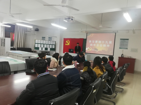 11月26日,财经学院各学生党支部分别召开了十九届四中全会的专题学习会,各支部通过会议传达了十九届四中全会的会议精神。各学生支部通过多种手段组织党员同学收看收听学习有关十九届四中全会的报道。支部党员同学们带着“坚持和巩固什么”和“发展和完善什么”这两个问题,开展了热烈的讨论,各支部通过专题辅导和个别辅导等形式,引导党员同学深刻领会十九届四中全会《关于坚持和发展中国特色社会主义、推进国家治理体系和治理能力现代化若干重大问题的决定》。