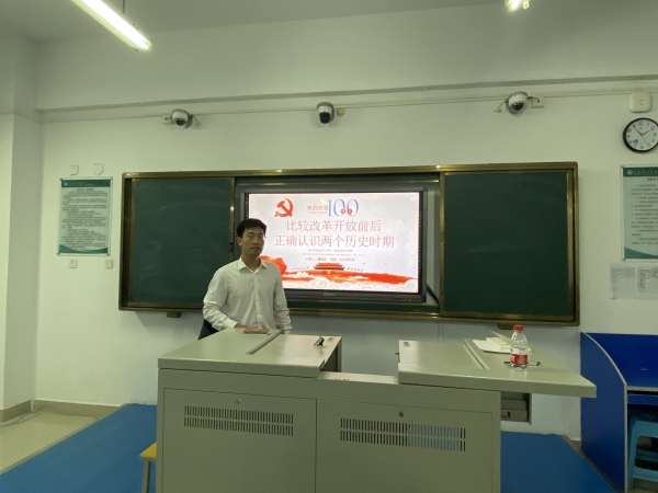 开始首先由支部书记曹雷欣作题为《比较改革开放前后--正确认识两个历史时期》的学习辅导报告。他比较了改革开放前后两个历史时期,详细的阐述了正确认识改革开放前和改革开放后两个历史时期的重要政治意义,最后指出了这个重大命题蕴涵的历史唯物主义哲学思想,通过对习近平总书记关于两个历史时期的重要讲话的学习让党员同学结合思想实际作进一步深入思考。大家认为,曹老师讲课内容丰富、观点鲜明、形象生动,为正确认识改革开放前后两个历史时期、更好把握历史规律,为深入开展党史学习提供了很好的帮助。接着进行学习交流,四位党员在自学《中国共产党简史》《论中国共产党历史》的基础上,作了发言,他们不仅谈了学习的体会,更结合实际,阐述了新时代共产党员的责任和担当,让大家受益匪浅,发挥了相互学习、相互启发,共同提高的作用。