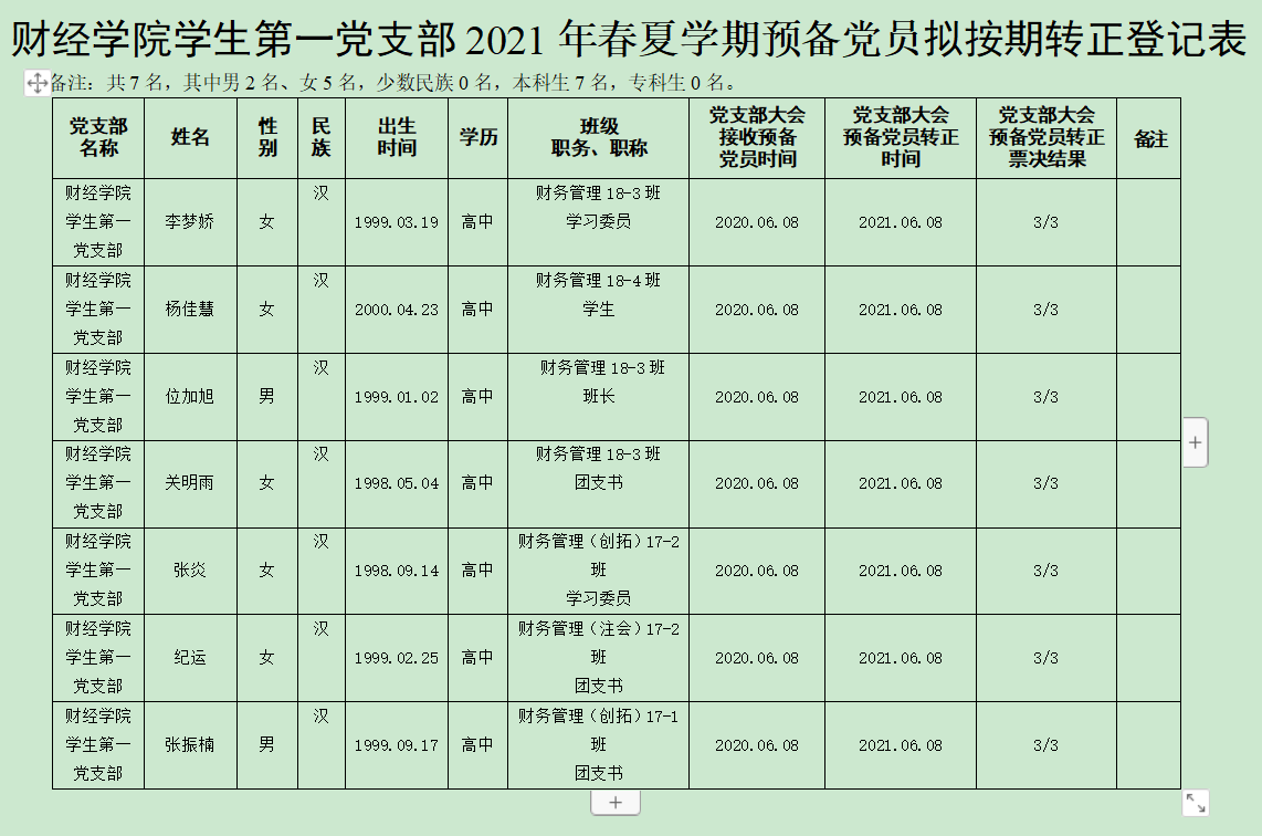 根据《关于实行“双推双评三全程”进一步规范发展党员工作的实施办法》要求,现将李梦娇等7名预备党员转正的基本情况公示如下,请予监督。