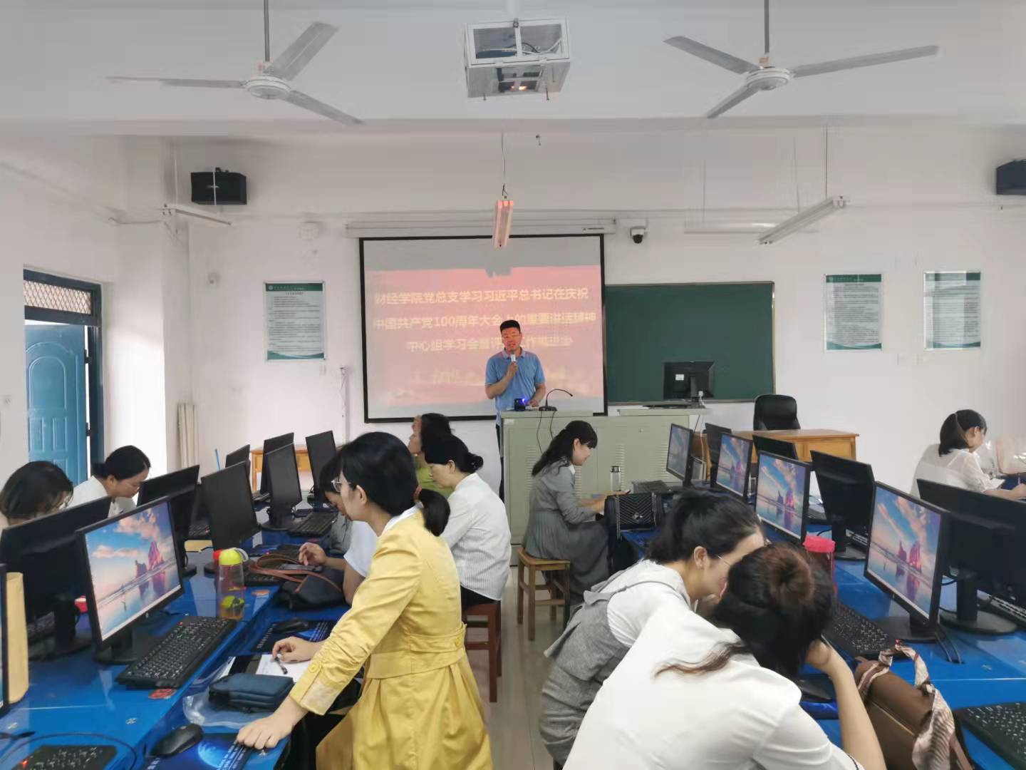 7月6日,财经学院党总支在二教412召开中心组学习会暨评建工作推进会,传达学习习近平总书记在庆祝中国共产党成立100周年大会上的讲话精神,开展党史学习教育专题学习,并研究部署本科教学工作合格评估工作。学院领导班子成员、科级干部、各党支部书记、各专业负责人、教师代表参加会议,学院党总支书记朱长明主持会议。