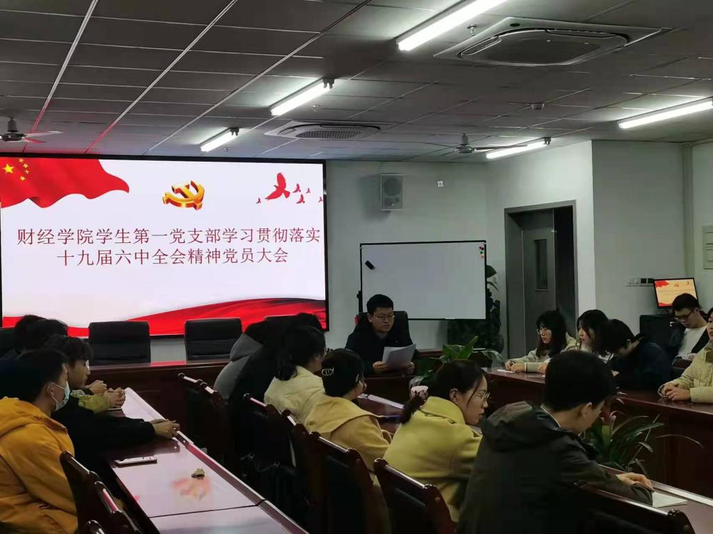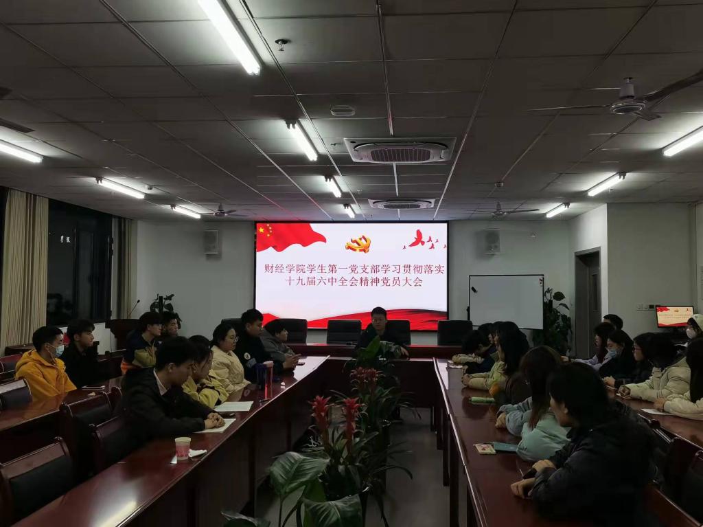 11月26日下午,财经学院学生第一党支部在双创中心408组织支部党员和入党积极分子开展了学习十九届六中全会精神主题党日活动。