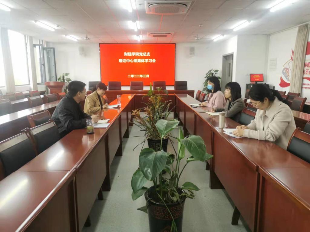 3月10日,财经学院党总支在双创中心408召开理论学习中心组集体学习会,学院班子成员参加学习会,会议由院党总支书记朱长明主持。