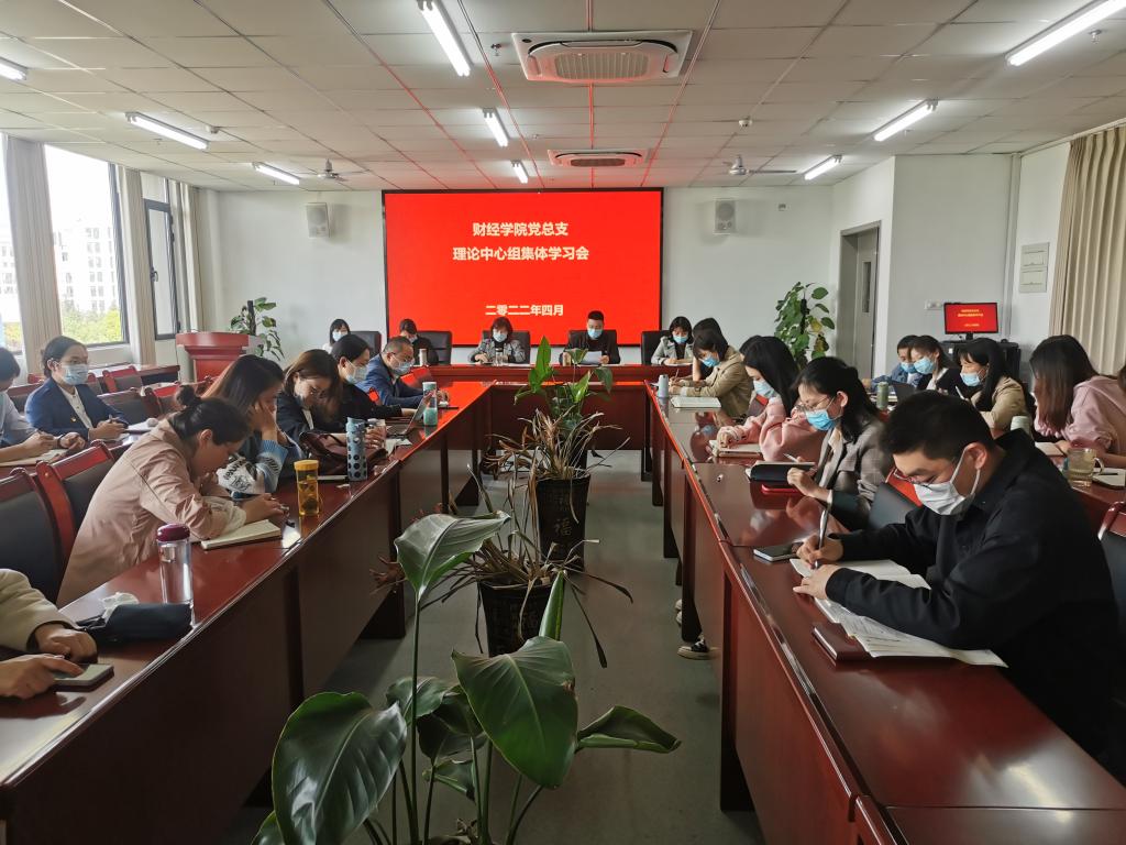 4月19日,财经学院党总支在双创中心408召开理论学习中心组(扩大)集体学习会,学院班子成员、科级干部、党支部书记和部分党员代表参加学习会,会议由院党总支书记朱长明主持。