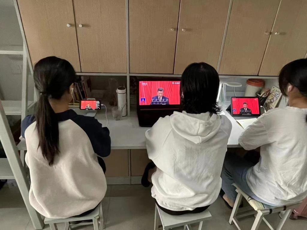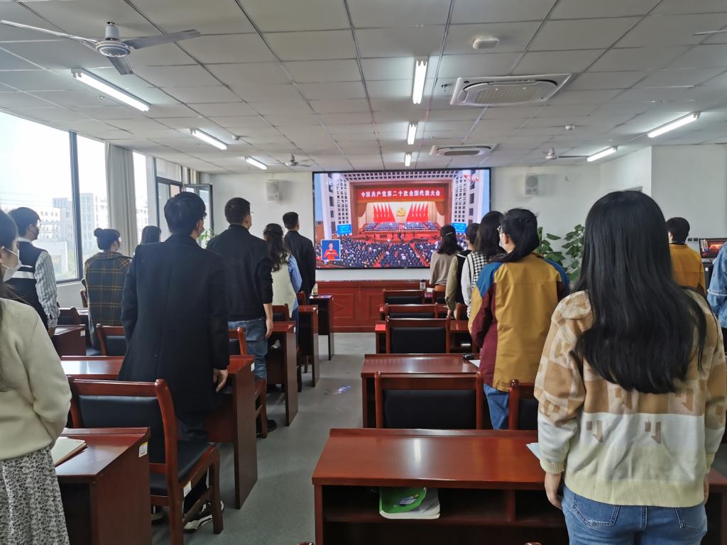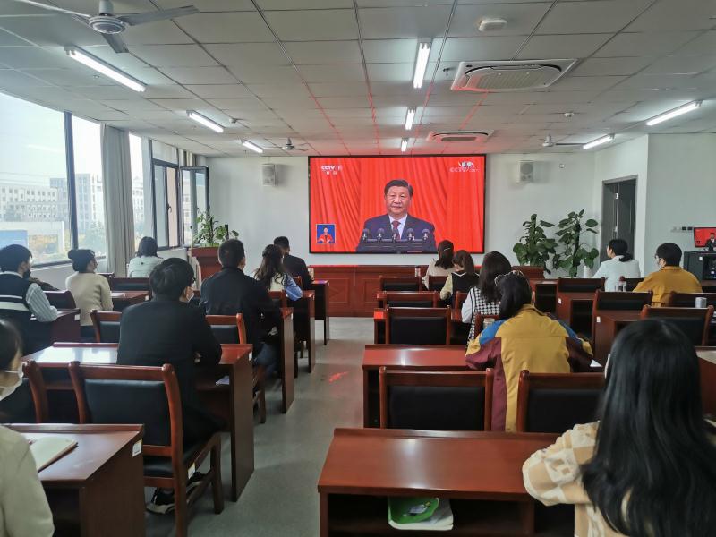 2022年10月16日上午10时,中国共产党第二十次全国代表大会在北京人民大会堂隆重召开,习近平总书记代表第十九届中央委员会向大会作报告。财经学院党总支理论学习中心组在双创中心408会议室集中收看了开幕会直播盛况,学院严格按照疫情防控要求,组织班子成员、科级干部、各支部书记、党员教师代表、入党积极分子代表、民主党派代表、学生代表等共同参加学习。其他老师和学生通过网站、客户端等形式收听、收看大会盛况。