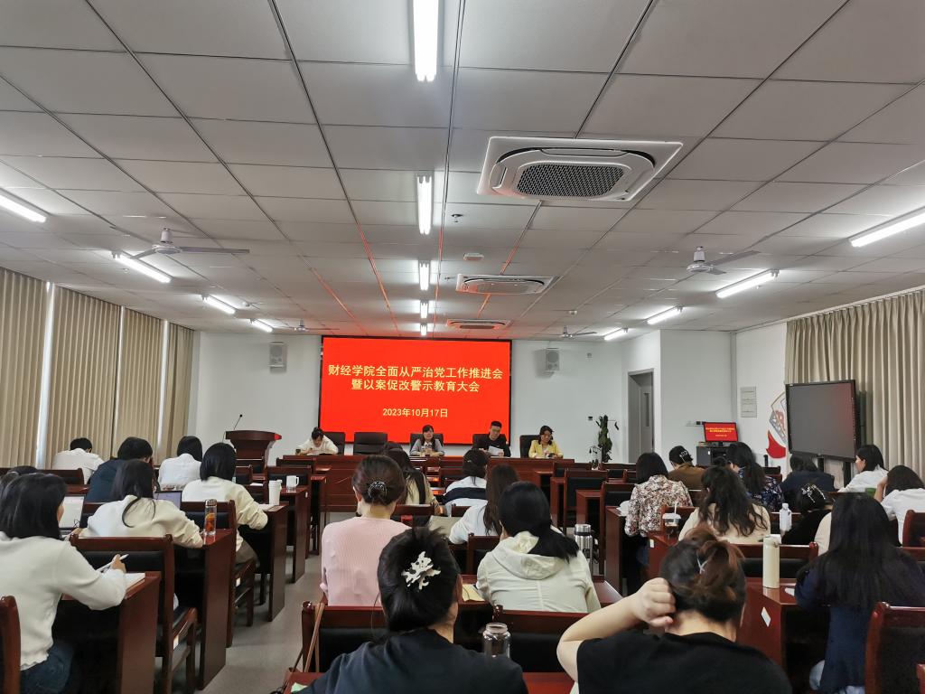 10月17日下午,财经学院在双创中心408会议室召开全面从严治党工作推进会暨以案促改警示教育大会,学院全体教职工参加会议,会议由党总支书记朱长明主持。