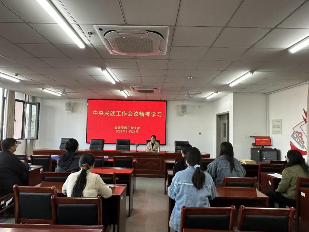 为深入学习贯彻中央民族工作会议精神,聚焦铸牢中华民族共同体意识,推动创新发展新时代党的民族工作高质量发展,管理学院会计学教工党支部于11月21日在双创中心407会议室学习了习近平总书记在中共中央政治局第九次集体学习时的重要讲话精神。会计学教工党支部全体教师党员参加学习,支部书记张立恒主持会议。