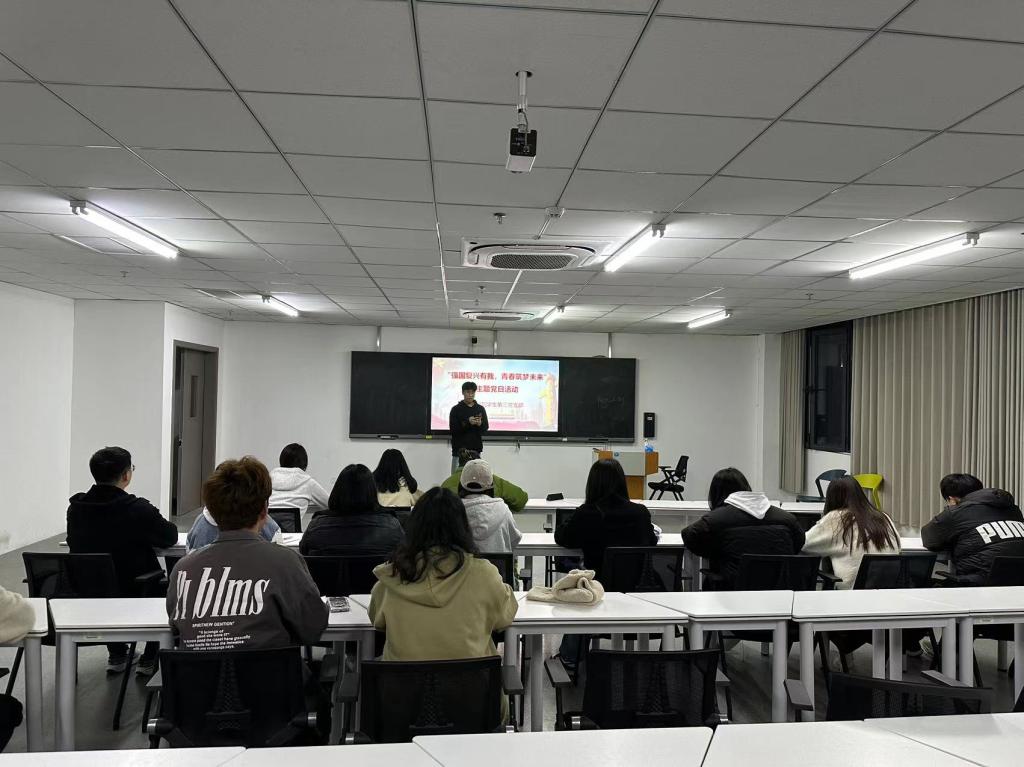 党日活动第二项由党支部书记胡苏桓进行讲话。党支部书记胡苏桓强调,大学生作为新时代的新青年,是建设祖国的主力军,应咬定青山不放松,击鼓摧征阔步行,更应把人生奋斗汇入新时代的洪流,在不懈奋斗中磨砺意志品质,在接力奋斗中释放青春激情、追逐青春理想,让绚丽的青春之花绽放在祖国最需要的地方。青年一代生逢盛世,应与祖国同向同行,不负盛世,以青春之力量谱写新时代华章!