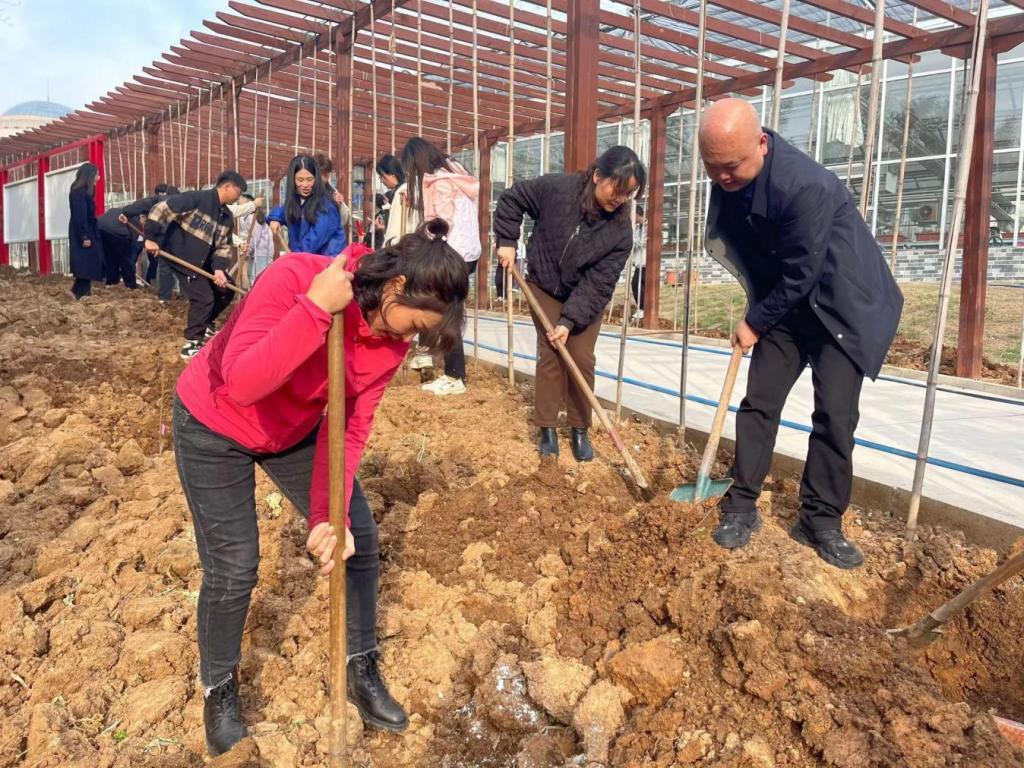 下午4点,植树活动在校内实习基地馨园正式启动。在各位领导和党员同志的带领下,园艺学院专业老师指导下,现场师生们热情饱满、干劲十足,纷纷挥锹铲土、扶植树苗、培实新土、提水浇灌,各个环节衔接有序,呈现一派热火朝天的劳动场面,现场处处都有忙碌的身影和欢声笑语。劳动间隙,领导老师与同学们亲切交流,询问同学们的学习生活情况,叮嘱他们要德智体美劳全面发展,不能忽视“劳”的作用,要培养劳动意识、环保意识、节约意识,自觉通过参与劳动涵养品德、增长智慧、强健体魄。