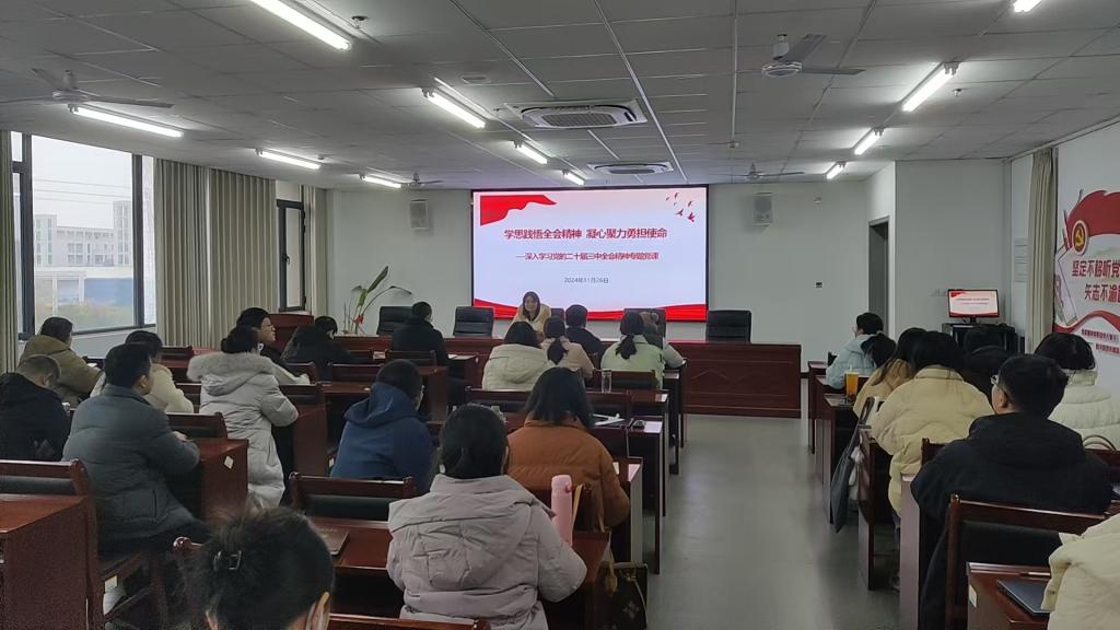 为了更好地深化全体党员对党的精神的理解与践行,提升党员的政治素养和使命感,管理学院于11月26日在双创中心楼408会议室开展了主题为“学思践悟全会精神,凝心聚力勇担使命”的主题党课。此次主题党课由管理学院党总支书记王艳平主持。