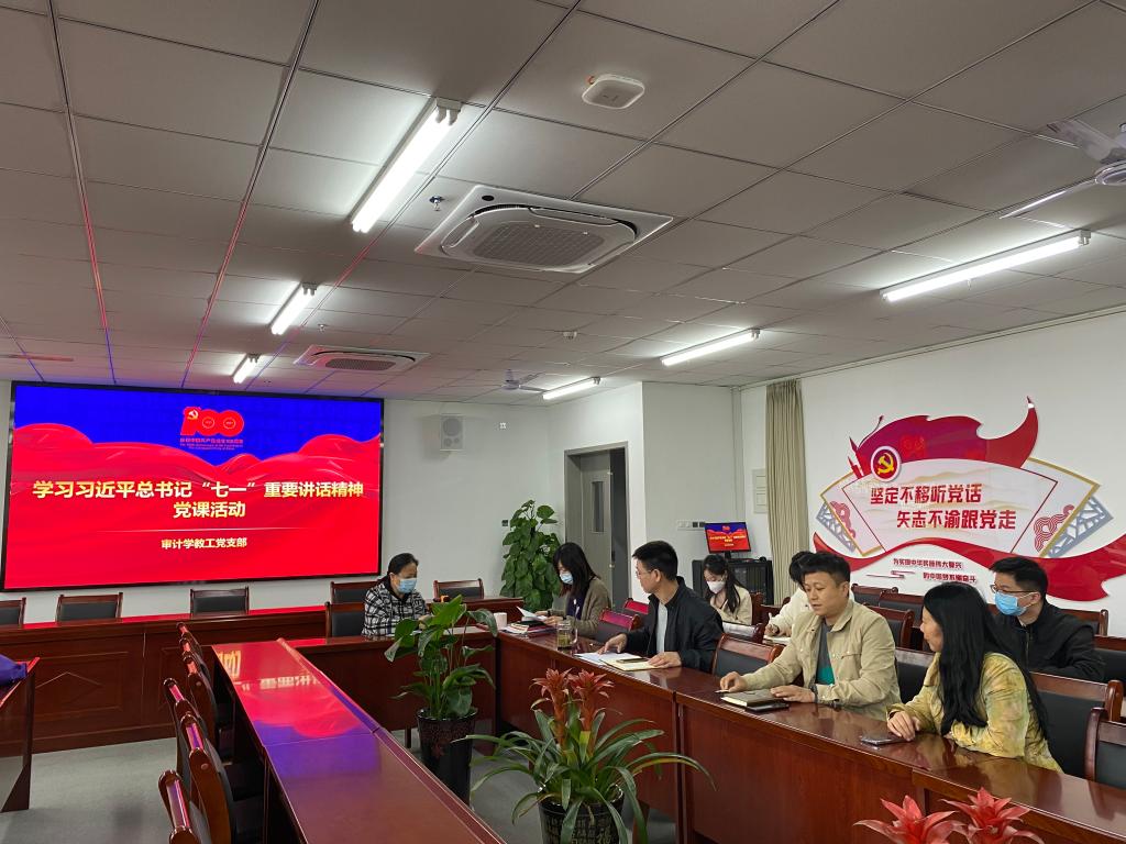 为深入学习贯彻习近平总书记“七一”重要讲话精神,扎实开展党史学习教育,10月26日下午,财经学院审计学教工党支部在408会议室召开学习习近平总书记“七一”重要讲话精神讲党课活动,支部书记荣国萱老师作了专题讲授,全体支部党员参加了此次活动。
