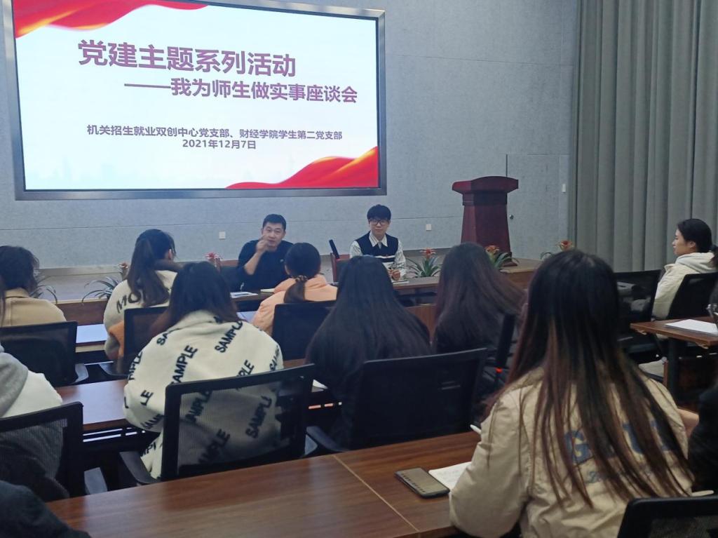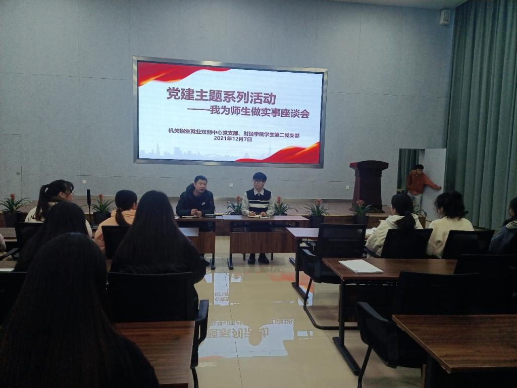 12月7日,机关招生就业双创中心党支部携手财经学院学生第二党支部在众创空间多功能厅组织召开“我为师生做实事”座谈会,支部党员、预备党员和积极分子代表参加。