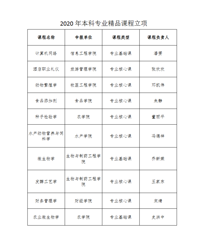 本年度本科专业精品课程立项工作,在各教学单位推荐的基础上,教务处先进行了资格初审,经评审专家会前审阅申报材料,申报人PPT汇报、专家提问、专家组集体评议,最终推荐以下10门课程作为2020年精品课程立项,现予以公示。公示期3天(2020年4月15日-2020年4月17日)。