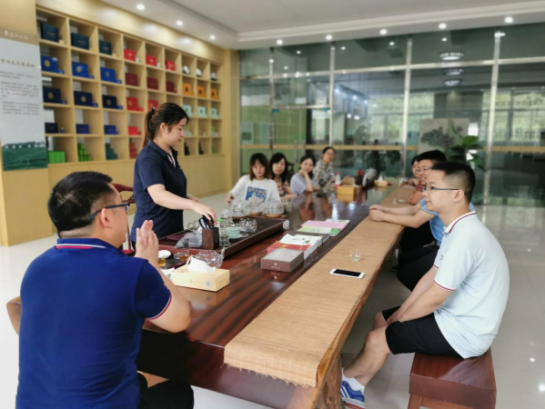 在蓝天茶叶有限公司,教研室成员参观了蓝天茗茶生产线,了解了茶叶收购、加工、销售流程。双方就行业环境、产业特征、人才需求、实习实训、技术支持等方面进行了深入探讨,寻找合作切入点。企业负责人表示希望在产业拓展、产品质量、企业核心竞争力和财务管理等方面得到人才支持,创新校企合作路径,实现经济效益和社会效益的同步提升。