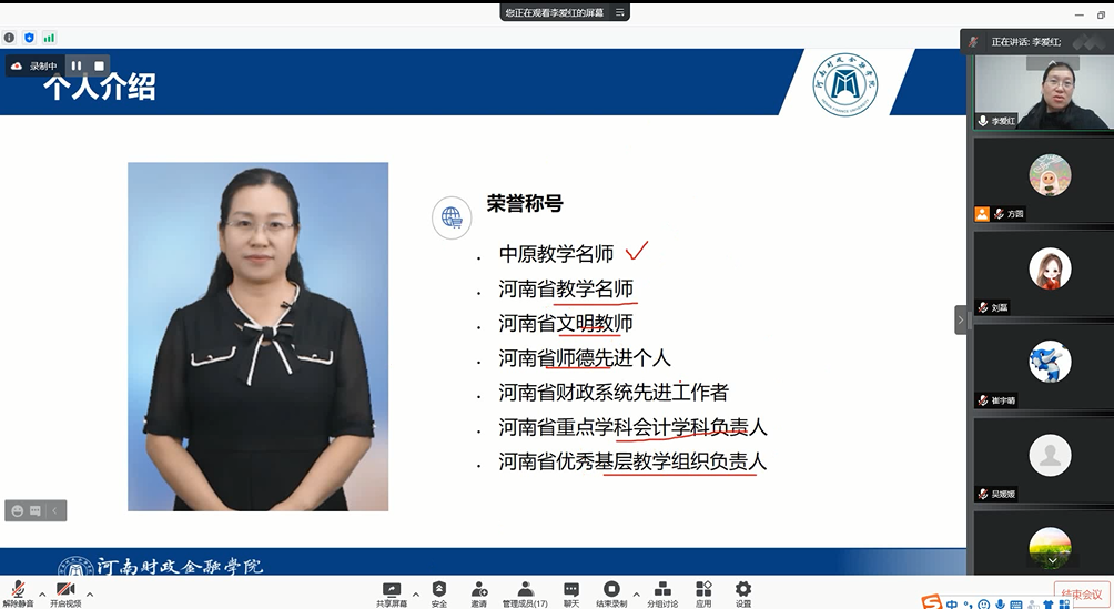 为进一步提升本科教学质量,提高教师教学技能,财经学院财务管理教研室于2021年12月2日邀请河南财政金融学院李爱红教授在腾讯会议网络平台作了题为“教学能力提升和教学项目申报”的专题讲座。讲座由财经学院院长郭春林教授主持,财务管理教研室全体教师参加。