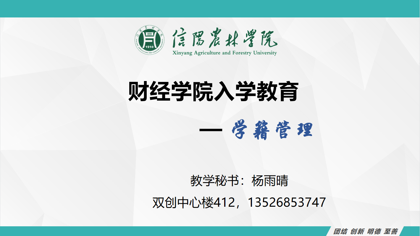 9月15日至9月16日,财经学院教学秘书杨雨晴在线上为新生做了关于学籍管理内容的入学教育。