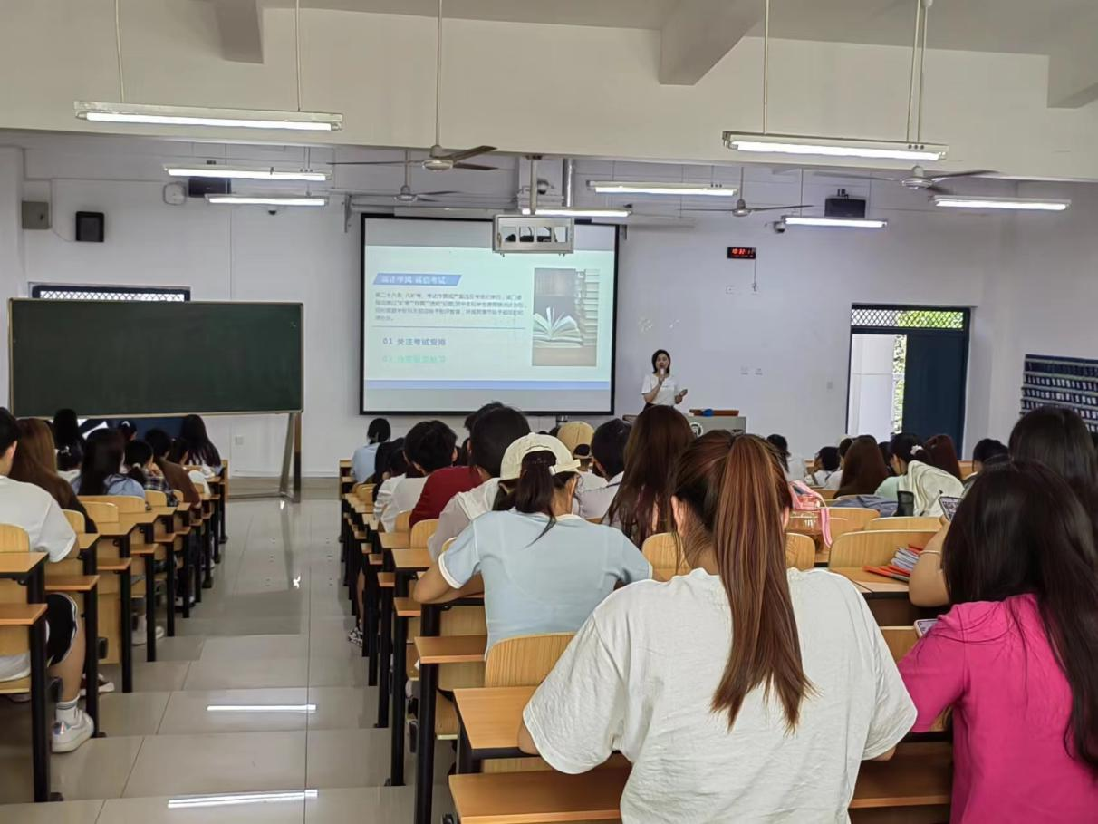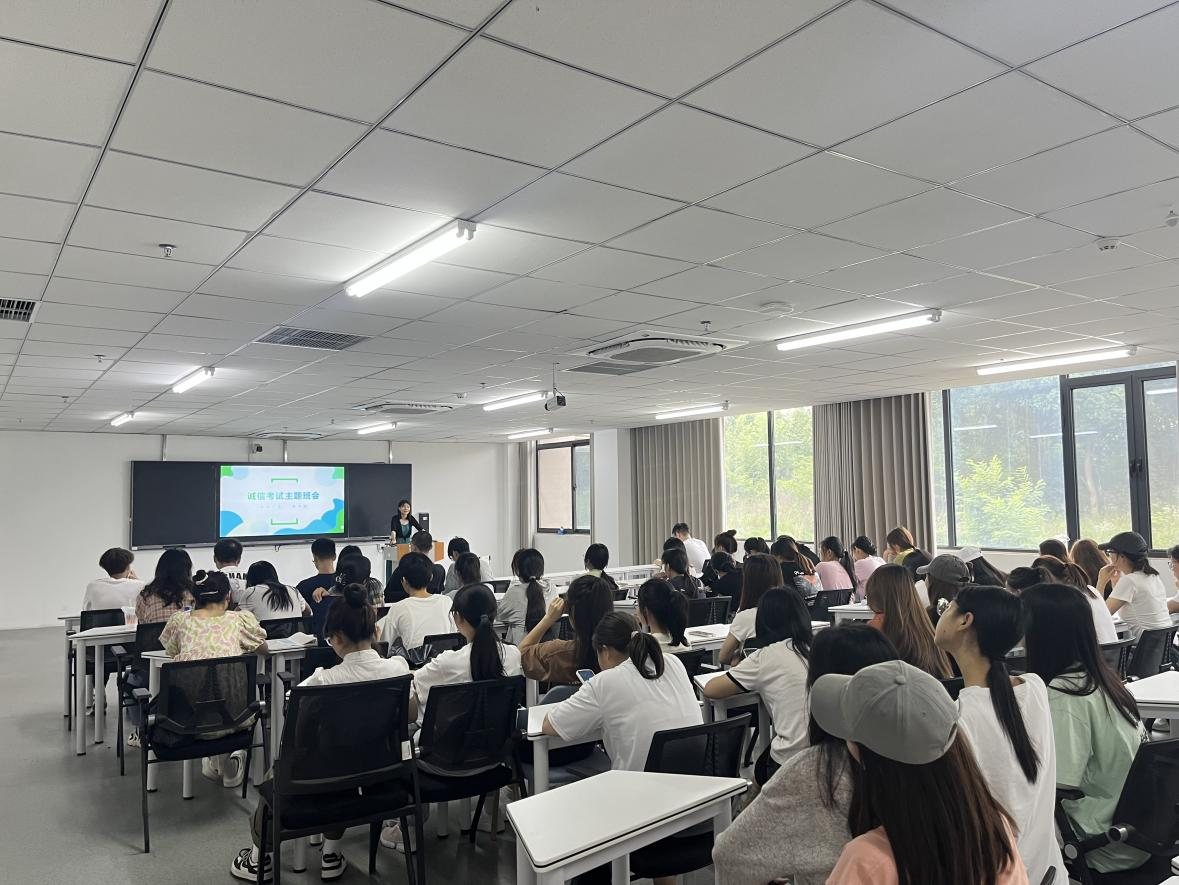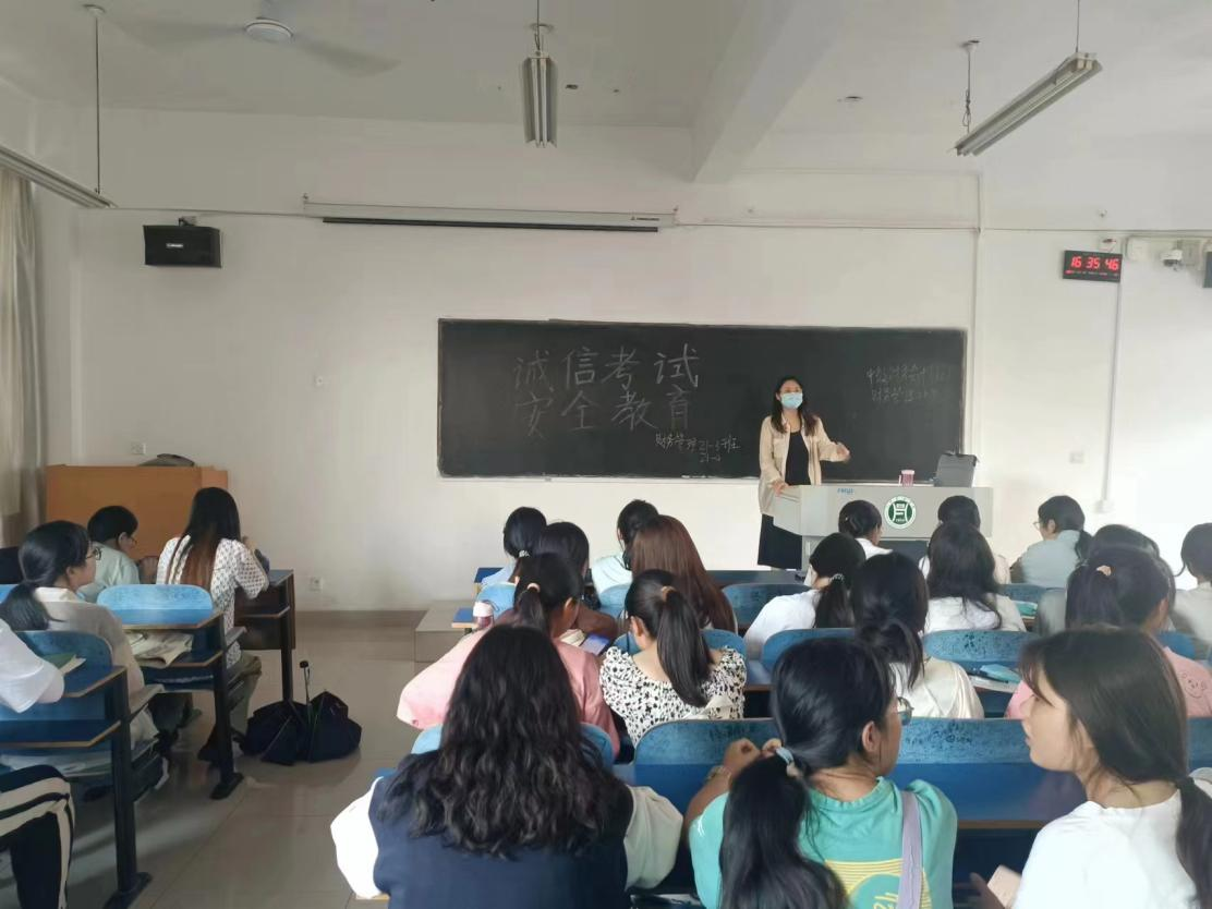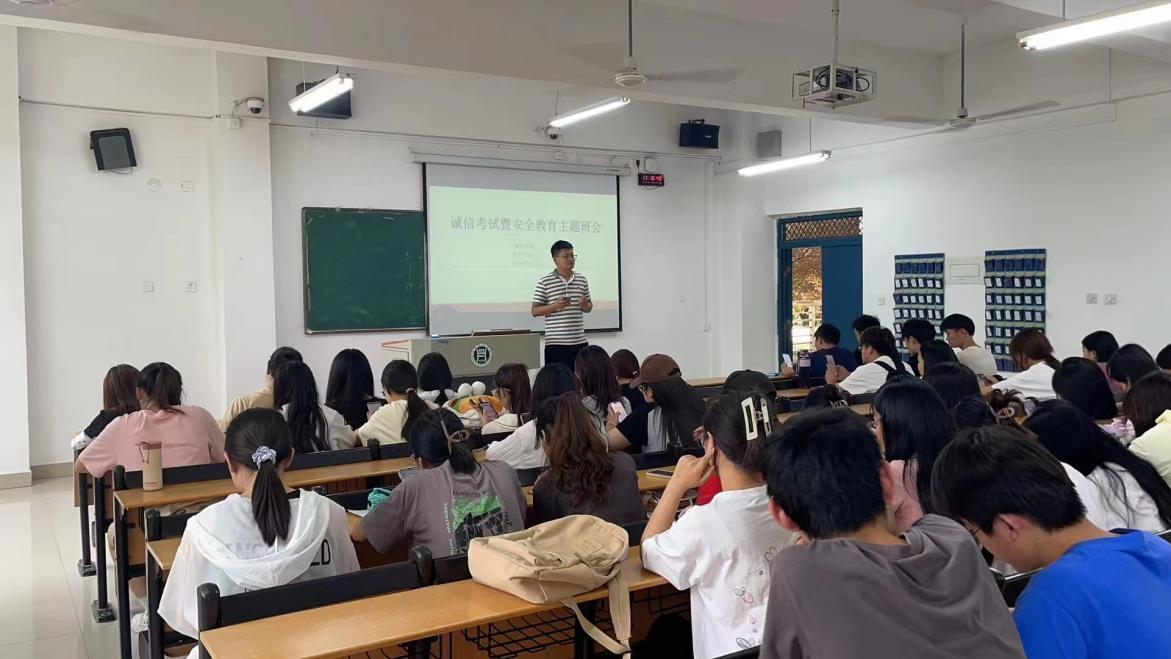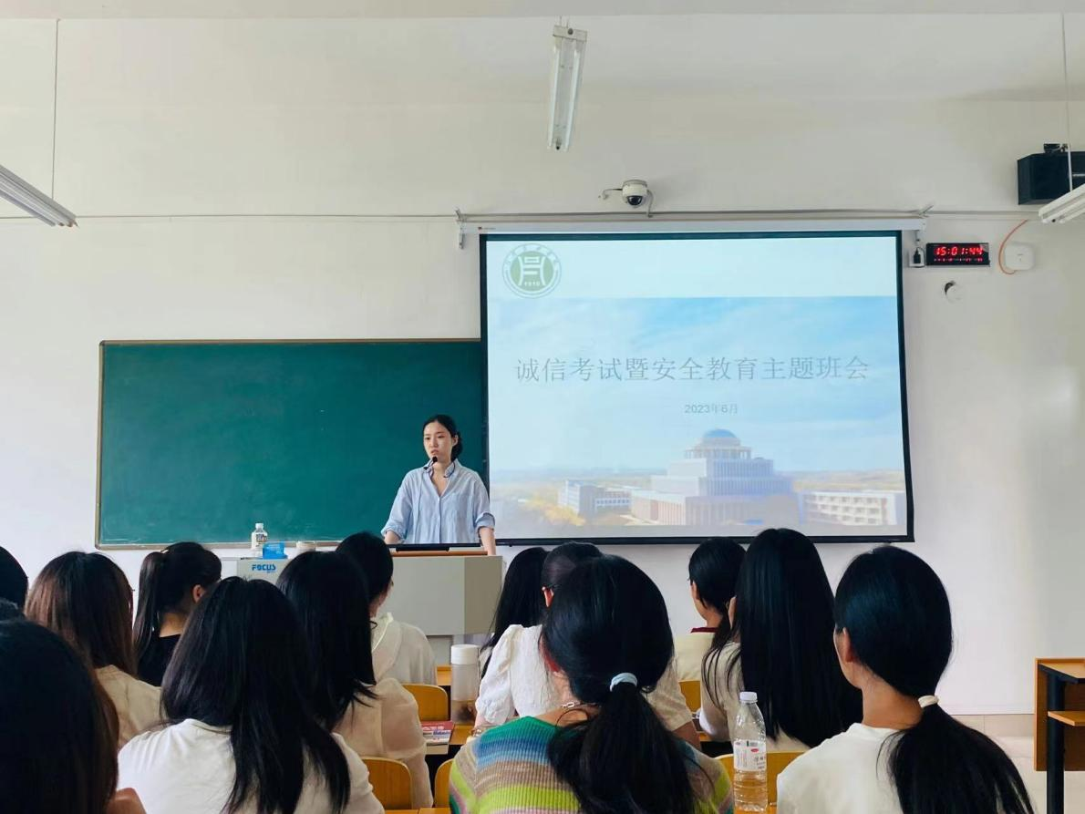 为扎实做好学生安全教育工作,进一步加强学风考风建设,强化学生树立诚信考试意识,营造公平、公正的考试氛围,财经学院于2023年6月12日至13日召开了“诚信考试暨安全教育”主题班会,各班辅导员主持会议,财经学院全体学生参与。