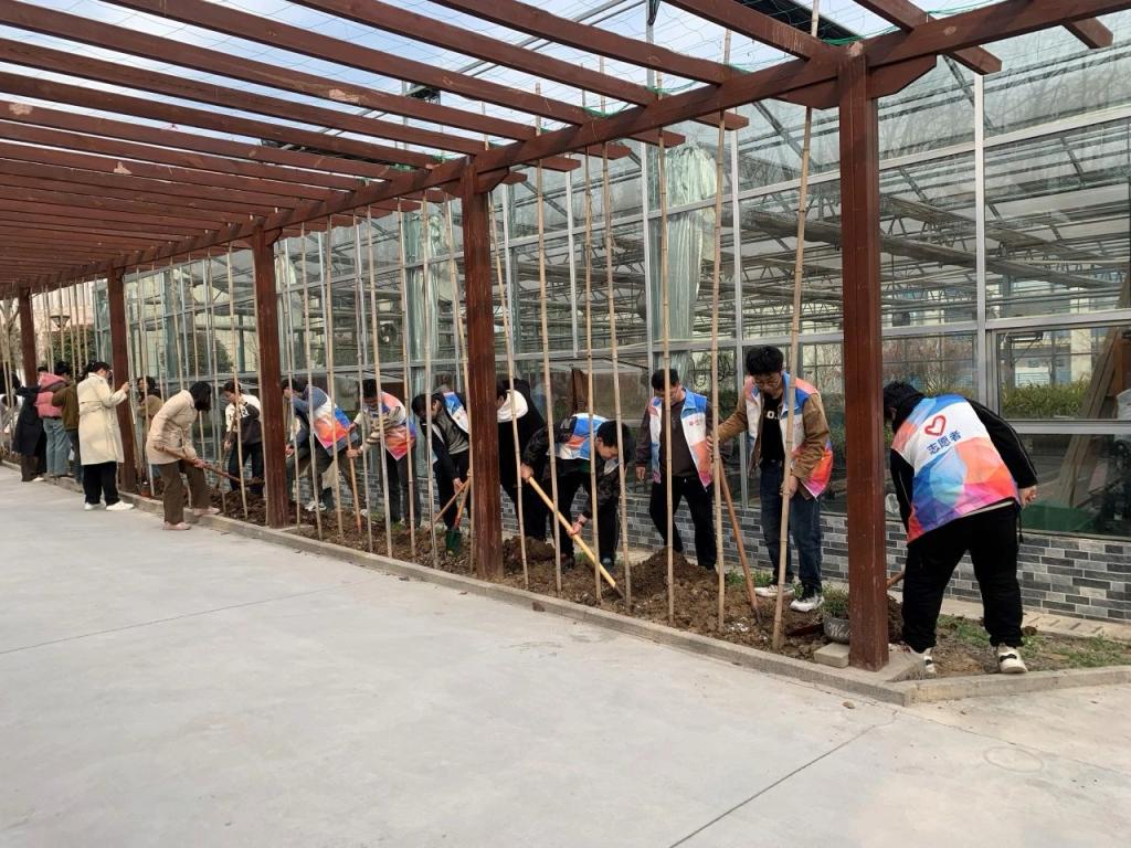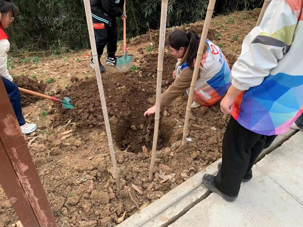学院向参与植树的师生们宣传了绿色环保知识,在爱绿护绿的号召下,大家分工协作、相互配合,干劲十足,撸起袖子弯下腰,铲土挖坑、提苗扶正、填土平整。虽挥汗如雨,但笑颜如花的师生们一边享受着盎然的春光,一边快乐的劳动着,欢声笑语为馨园增添了一方艳丽。