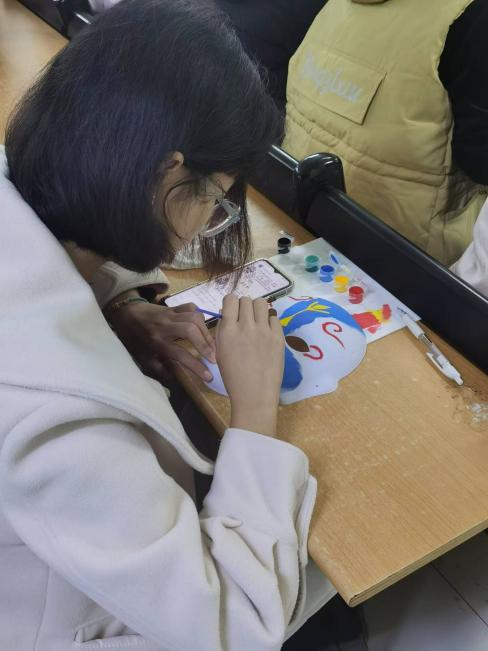 活动伊始,戏曲社团成员为同学们讲解了京剧脸谱的演变历史、分析、特点等知识。戏曲社团成员带领同学们一起观看经典的京剧片段,感受国粹的魅力。活动最后,戏曲社团成员向同学们分发脸谱材料,让同学们自由绘制脸谱,大家全神贯注地投入到脸谱的创作中,谨慎地动笔勾勒、填色,创作心中独特的艺术形象。