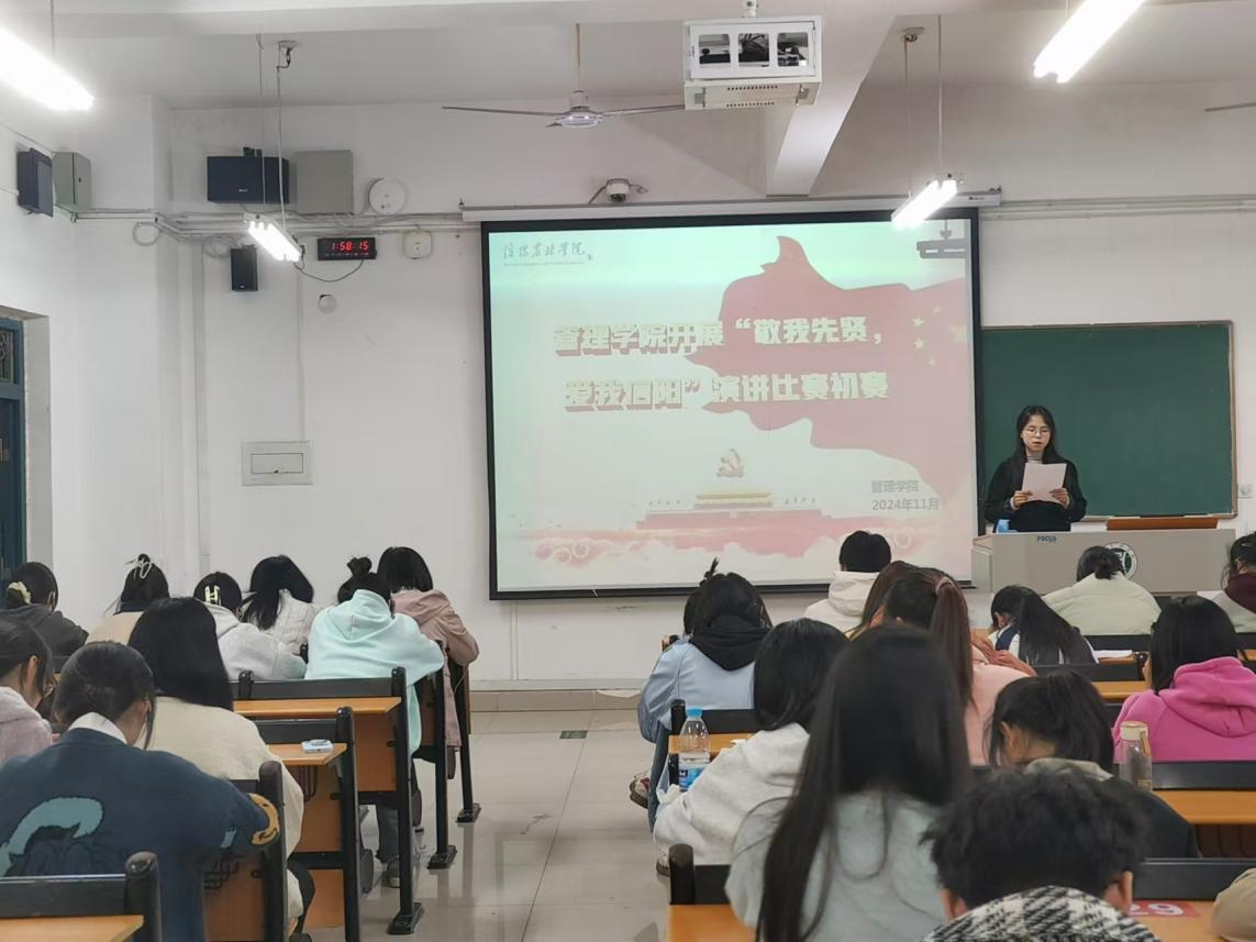 为引导师生更好地了解信阳历史文化,用好用活丰富名人资源,营造浓厚的校园文化氛围,11月8日晚管理学院在二教103开展“敬我先贤 爱我信阳”主题演讲比赛初赛,管理学子积极参与其中。