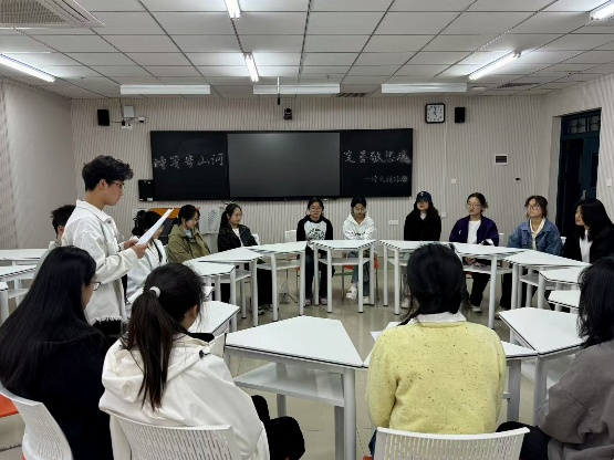 清明时节,慎终追远,礼敬先贤。为弘扬传统文化,厚植家国情怀,管理学院于4月1日在三教206教室举办“我们的节日·清明”——“诗笺寄山河,笔墨敬忠魂”主题诗文诵读会,此次活动旨在通过经典诵读、原创诗词展示等形式,引领青年学子在传统文化浸润中感悟家国情怀,在历史回望中汲取奋进力量。
