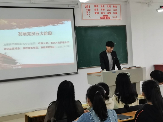 各支部书记从“党章”、“党史”,及“如何树立正确的入党动机”、入党流程等方面入手,结合当代大学生所处的时代背景和发展机遇,嘱咐2020级新生要倍加珍惜中国共产党多年艰苦奋斗打下的良好基础,主动学习党的理论知识,提高自身思想觉悟,积极向党组织靠拢。要明确党员的基本条件、权利和义务,端正入党动机,不仅要在组织上入党,更重要的是要从思想上入党。同时,各支部书记也对入党流程和发展党员的标准等内容给同学们进行了详细的讲解,鼓励我们的广大学生要提升学习能力,积极参与丰富多彩的校园文化活动,从身边点滴做起,争取早日入党。