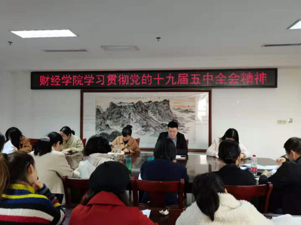 11月17日,财经学院在综合行政楼821会议室召开会议,集中学习贯彻党的十九届五中全会精神,会议由财经学院党总支书记朱长明主持,学院全体教师参加会议。