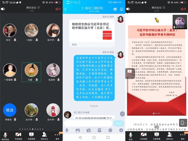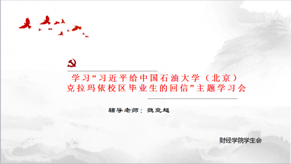 7月7日,习近平总书记给中国石油大学(北京)克拉玛依校区毕业生亲切回信,肯定他们到边疆基层工作的选择,并对广大高校毕业生提出殷切期望,鼓励广大青年毕业生“到边疆去,到基层去”。为了同学们更好的理解和学习习近平总书记的回信,财经学院通过多种线上形式开展学习习近平总书记回信的活动,包括召开毕业生专题班会、开展主题团日活动和学生会干部集体学习。