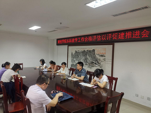 7月14日下午,财经学院在行政楼821办公室召开会议,传达和学习学校本科教学工作合格评估以评促建推进会精神。学院班子成员、科级以上干部及骨干教师参加本次会议,会议由院长郭春林主持。