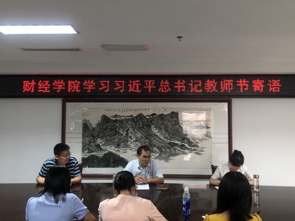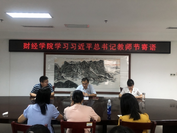 王庆兵副书记首先向财经学院全体教师致以节日问候,并带领大家学习9月9日习近平总书记教师节寄语,分享自己的心得体会。