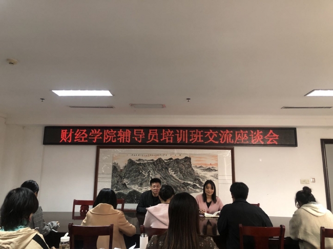 为深入领会学校辅导员培训内容,促进学习交流和业务能力提升,10月20日,财经学院在行政楼821会议室召开辅导员培训班交流座谈会,党总支书记朱长明、党总支副书记王艳平出席会议,全体专兼职辅导员参加会议,会议由王艳平主持。