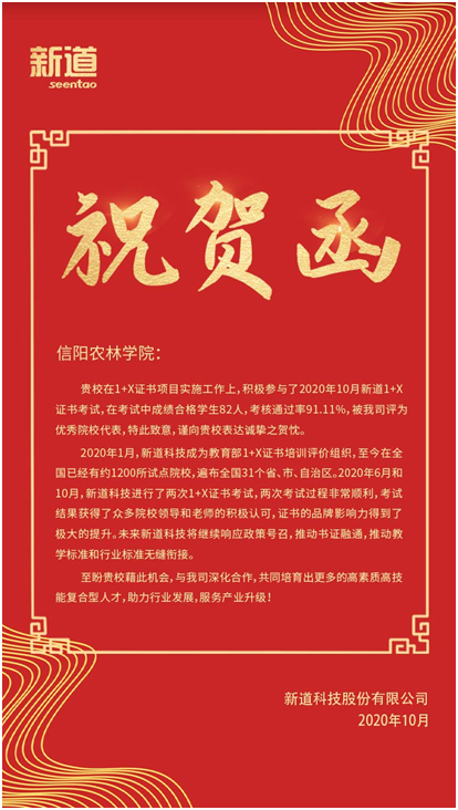 为了稳步推进“1+X”职业技能等级证书试点工作,学院领导高度重视,组建实施小组,由副院长张立恒具体负责。在2020年9-10月期间实验室主任孔祥坤带领实验教师曹雷欣、郭靖韬、彭可欣、崔艳叶组织学生进行了为期40天的校内培训。本次培训主要利用课余时间,培训以实操为主,理论为辅。学院将考核内容有机融入课程教学中,并对学生进行强化训练和模拟考试,以最大的努力保障参加考试学生取得优异成绩。其中,新道“1+X”证书考核通过率为91.11%。