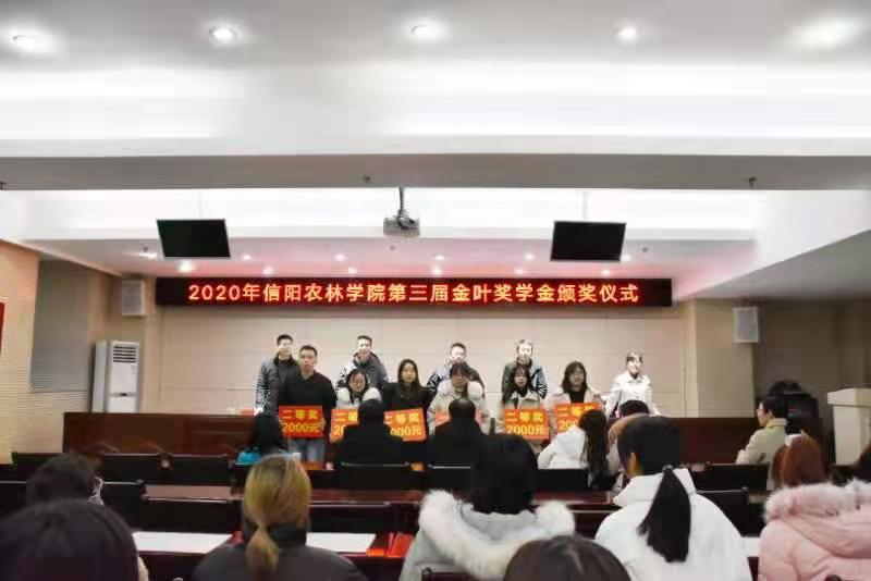 12月11日下午,2020年beat365在线平台官网第三届“金叶奖学金”颁奖仪式在行政楼一楼会议室举行。此次颁奖仪式由校网络管理中心主办,财经学院承办。陕西金叶莘源信息科技有限公司总经理张涛、校园业务中心主任李宏波,校网络管理中心主任杜永强、副主任张耀军,体育学院党总支副书记李远胜,文学艺术学院党总支副书记杨艳华及财经学院班子成员出席颁奖仪式,获奖学生及部分学生代表参加,仪式由财经学院院长郭春林主持。
