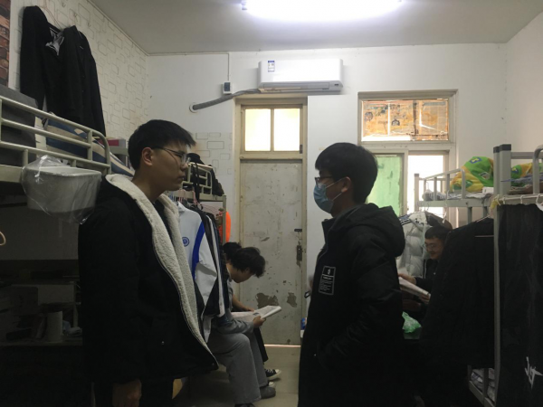 此次宿舍安全卫生工作重点是对宿舍存在的安全隐患进行排查,排查重点放在电源设施、易燃易爆物品、大功率用电器使用情况及其它安全隐患问题。走访过程中,辅导员与学生的亲切交谈,了解学生返校后的学习生活情况及考试备考情况。并就学生假期动向和新学期计划与同学们进行深入细致的谈心谈话,同时要求同学们严格遵守学校和学院相关规章制度,在学校疫情防控常态化的形势下,共同构建整洁舒适和安全稳定的宿舍环境。