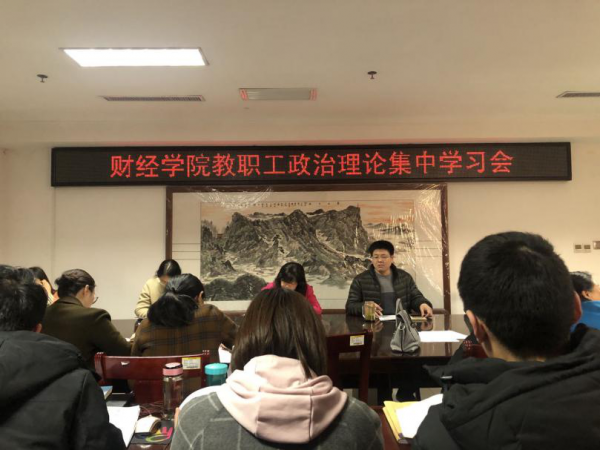 3月16日,财经学院召开教职工政治理论集中学习会,学院全体教师参加会议,会议由财经学院党总支书记朱长明主持。