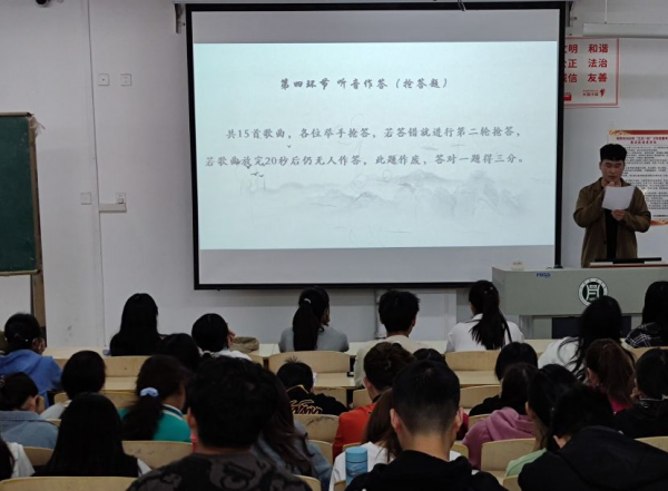 经过初赛精彩的角逐,共有12位同学晋级半决赛。本次活动主要是通过现场竞答的形式进行,共有“看音写字”、“寻找字中字”、“诗词接龙”和“听音作答”四个环节。每个环节从汉字积累、字音字形、诗词积累和文化积累等方面全方位的考验了参赛选手的知识储备。环环相扣,兼具知识性和趣味性,赢得现场阵阵掌声。经过四个环节的激烈角逐,吴慧甜、陈雅宁、徐萌三位选手表现极为优异,取得了前三名的好成绩,将组队代表学院参加校级比赛。