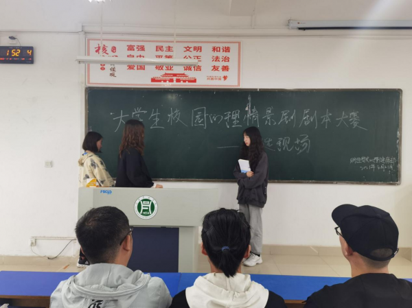 活动分为三个阶段:4月15-4月19日为学生撰写校园心理情景剧剧本阶段;4月20日为学生和老师评选优秀剧本阶段;4月21日为优秀剧本现场表演阶段,届时会将优秀的剧本及演员推选给校心理健康教育与咨询中心。参赛作品的题材都取自生活中的小事,贴近大学生学习、生活的实际,每位同学化身小小编剧,以他人的角度体会人情冷暖,用他人的眼光看待世态万千。