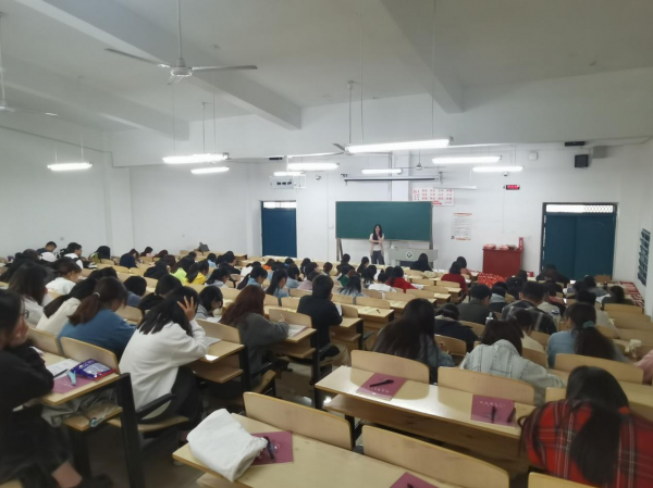 本次考研讲座分上下半场,上半场中黑梦莹老师就为什么考研、考研的意义为同学们分析了目前考研形势,就如何择校选专业、如何准备个阶段考试提供了很多很好的建议,同时介绍了一些考研小知识,鼓励同学们继续学习,提升自我。下半场则由张丽娜老师通过分析历年考研英语典例为学生们讲授考研英语的小技巧,详细说明了英语的备考方案,以及考研英语与四六级英语的学习差别。讲座现场,老师们语言风趣,帮助了同学们增强信心,赢得了同学们阵阵热烈的掌声。