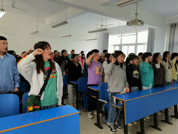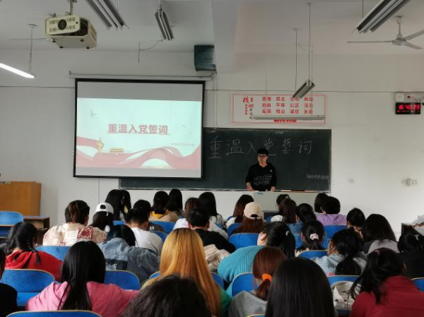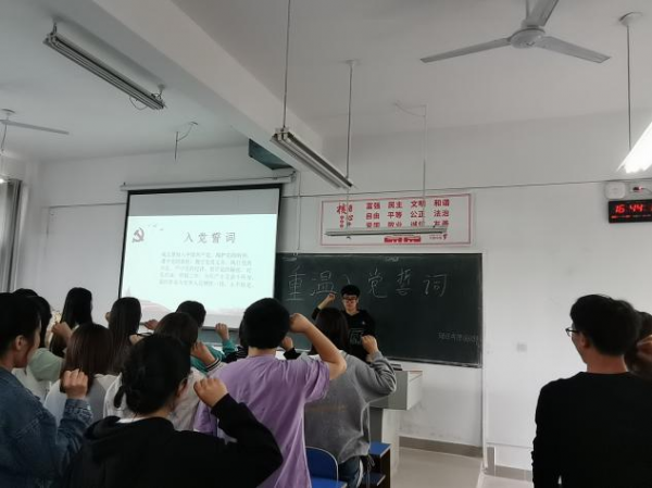 为深入学习贯彻习近平总书记在党史学习教育动员大会上的重要讲话精神,激发广大同学爱国主义热情。财经学院于2021年4月28日下午4时,在一教C203组织开展了以“重温入党誓词”为主题的党史学习教育,辅导员吴昊老师组织召开,全院学生代表积极参与。