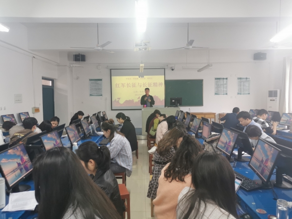 为深入推进党史学习教育,引导老师们学史明理、学史增信、学史崇德、学史力行,推动党史学习教育走深走实,5月11日下午,在二教412教室,财经学院党总支书记朱长明以《红军长征与长征精神》为题、院长郭春林以《延安岁月与延安精神》为题分别为全体教师党员上了一堂生动的专题党课。